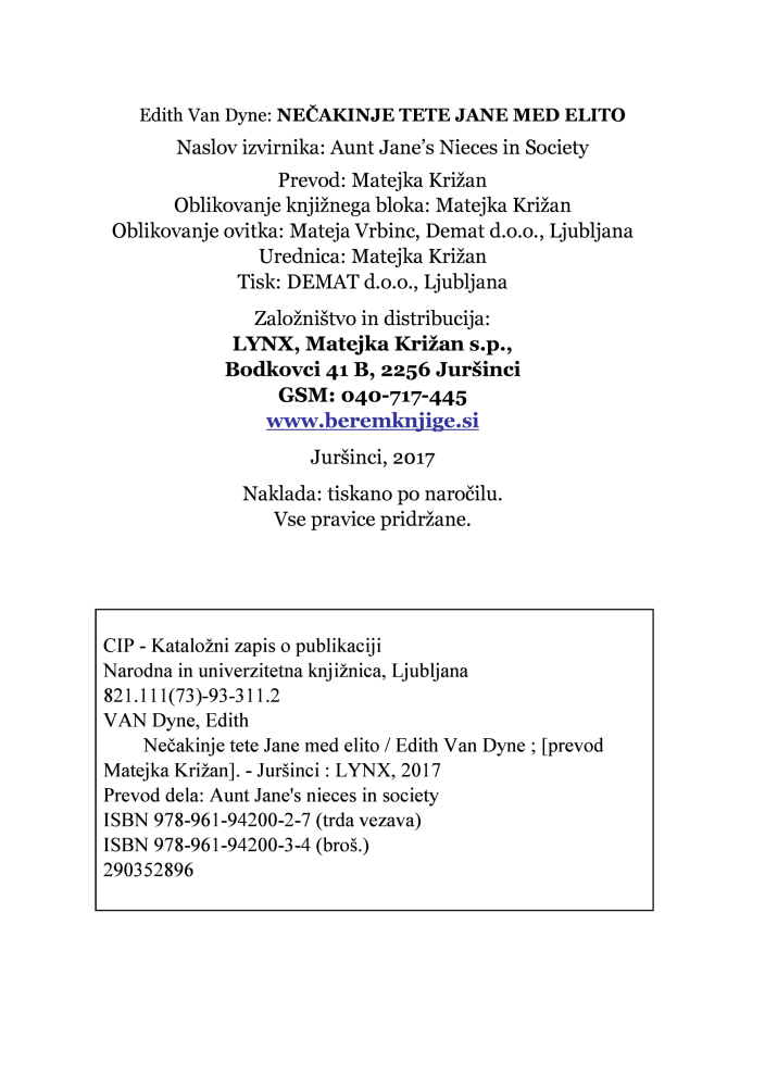 Bodi prvi ocenjevalec “NEČAKINJE TETE JANE MED ELITO (broš.)/E. van Dyne”